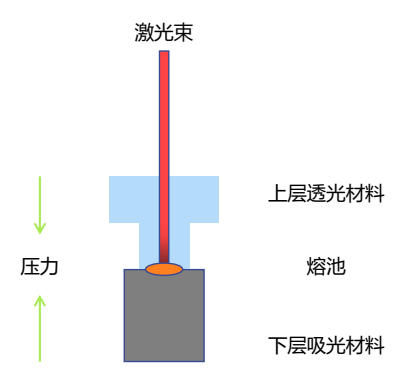 塑料激光焊接的基本原理是特定波長的激光光束透過上層透光材料達(dá)到下層吸光材料表面轉(zhuǎn)換成熱量,由于在壓力的作用下,兩層材料緊密貼合,產(chǎn)生的熱量不能及時(shí)散發(fā),在兩者結(jié)合的部位聚集并迅速形成熔池。待光束停止后,持續(xù)的壓力作用下,熔池冷卻并固化,從而實(shí)現(xiàn)兩者融合焊接。