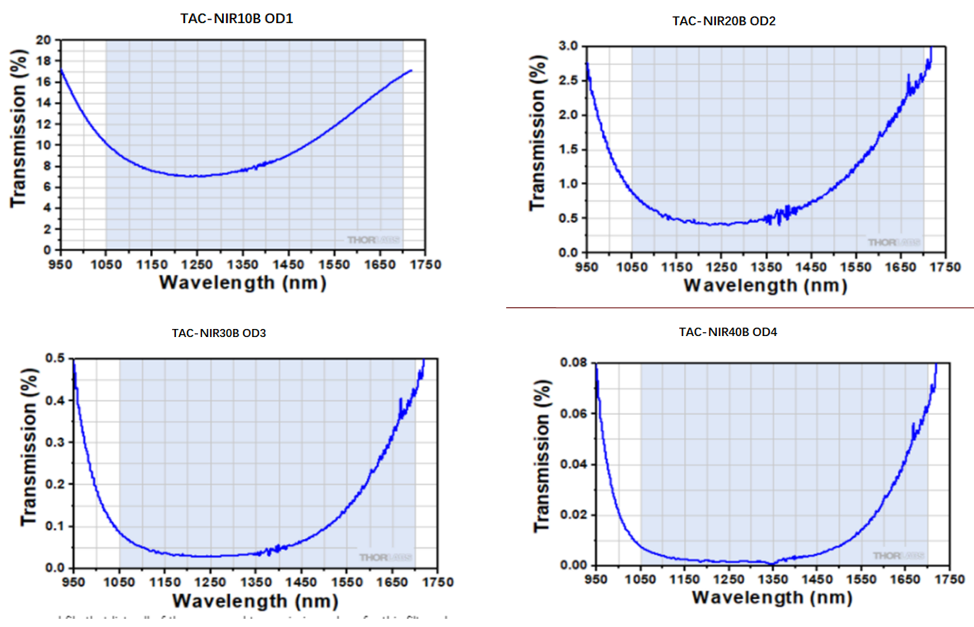吸收型衰減器通過(guò)率和光密度曲線(xiàn)圖: